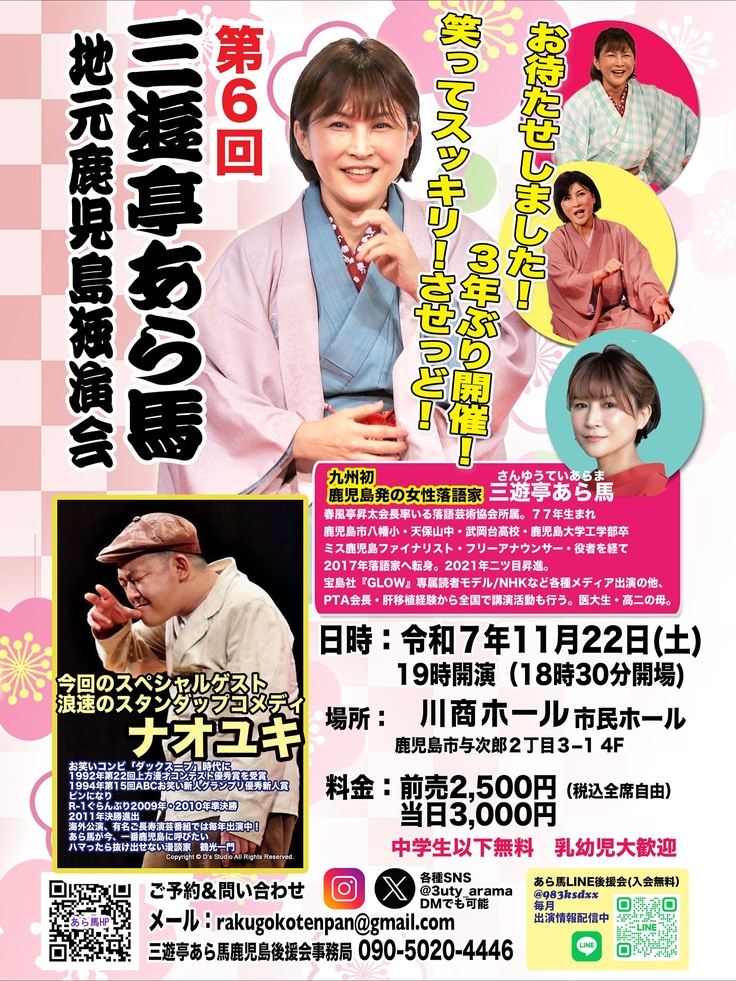 ちなみに、あら馬さん、今週末の11月22日(土)に鹿児島市で独演会を開催されます。