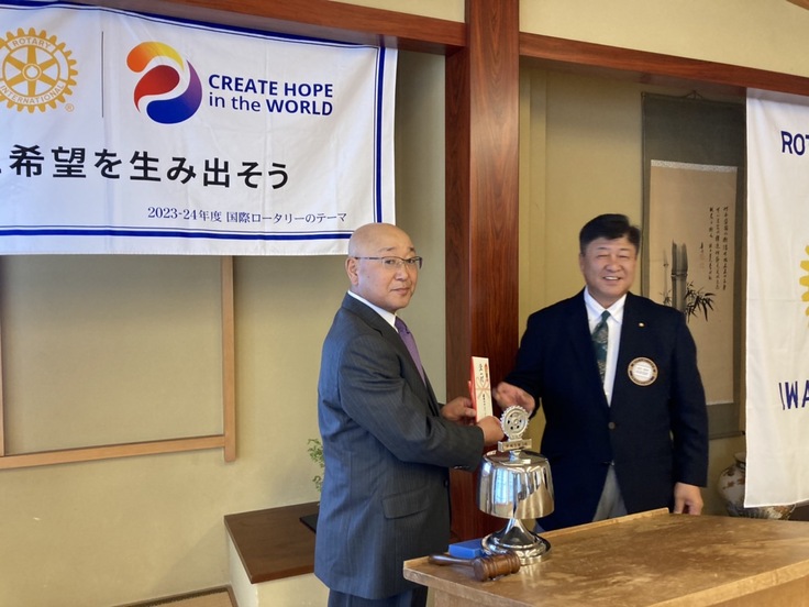 4月25日に、岩出山ロータリークラブ様の定例会合にゲストとして、岩出山城山SL保存会の安倍と大江がお呼ばれしました。