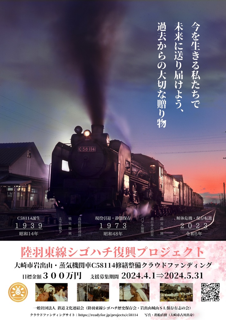 これまで「今を生きる私たちで未来に送り届けよう、過去からの大切な贈り物」をプロジェクトテーマとしてSL保存運動を展開して参りました。