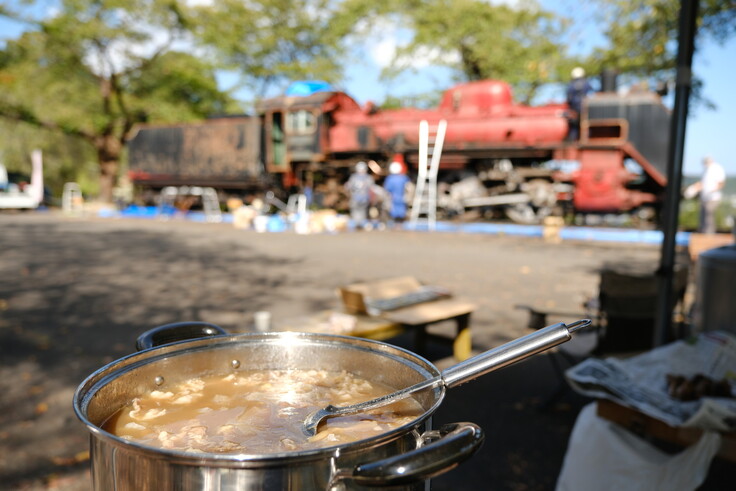 そして今日は秋空の下、山形名物の芋煮を炊き出しいたしました!