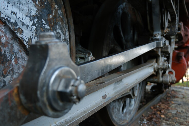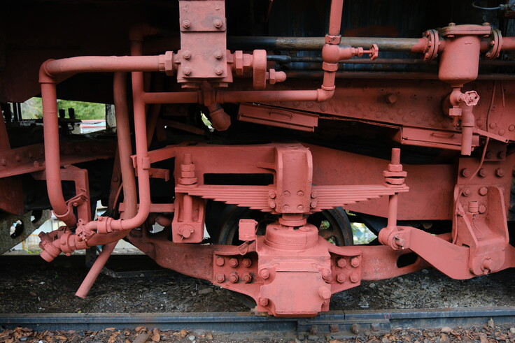 運転室下の足回りの錆止め塗装の赤が鮮やかです。