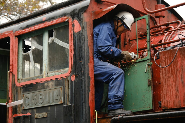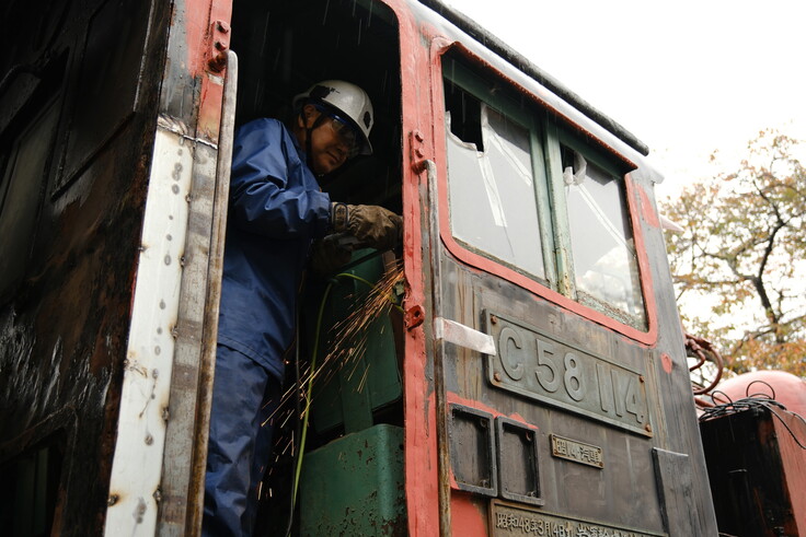50年前に陸羽東線を照らしてきたシゴハチさんのヘッドライト(前照灯)が50年ぶりに光を取り戻しました。