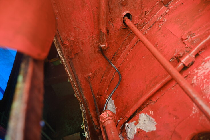 機関室内に新たな配線用ボックスを設けました。