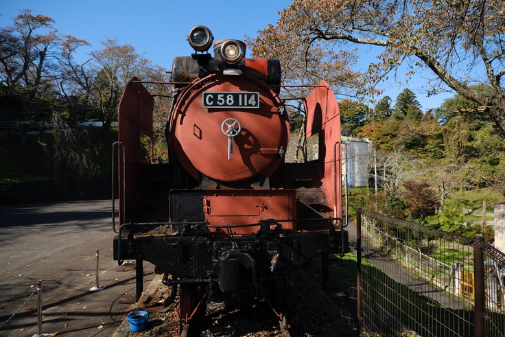 なおこのライト2台と煙室ハンドルは西古川で解体されたC58形19号機から移設したものです。