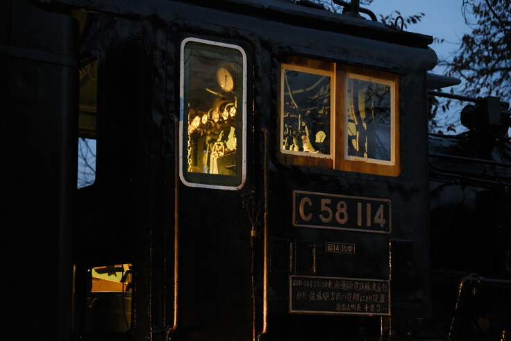 機関室内も優しい電球色で計器類が照らされています。