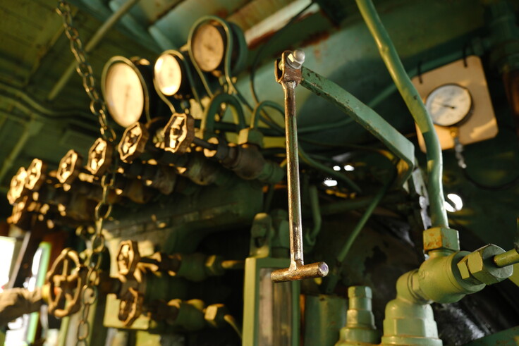 こちらはエアータンク用のプレッシャーゲージで、汽笛で使った圧縮空気の残量をこれで確認できます。