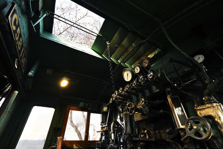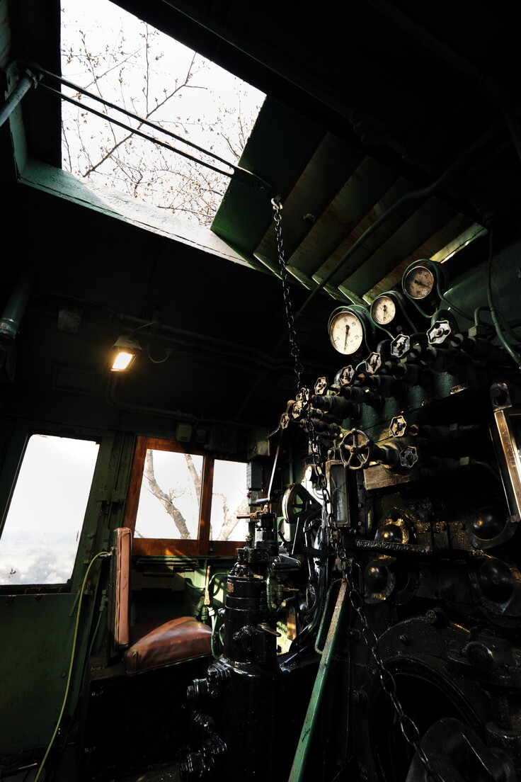 そして50年間開くことのなかった天窓も開閉できるようになり、50年ぶりに運転室に空から光が差し込みました。