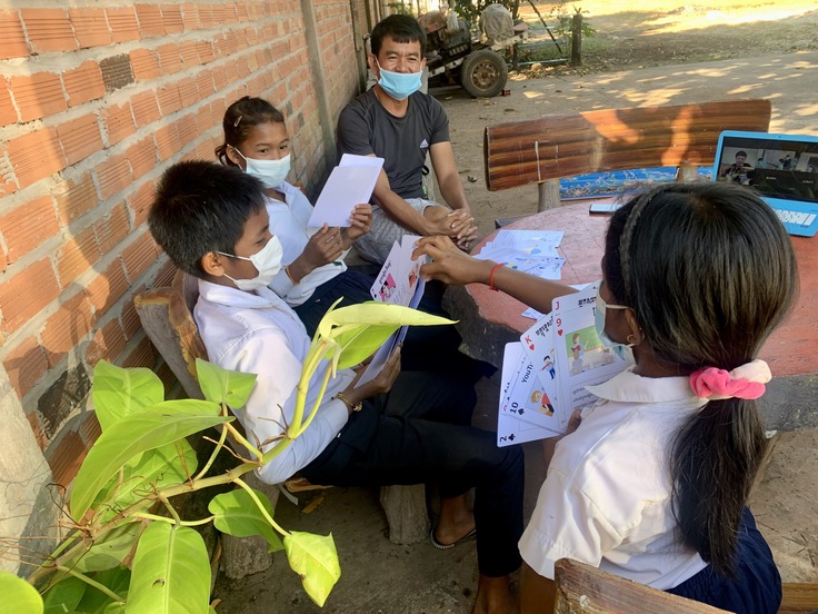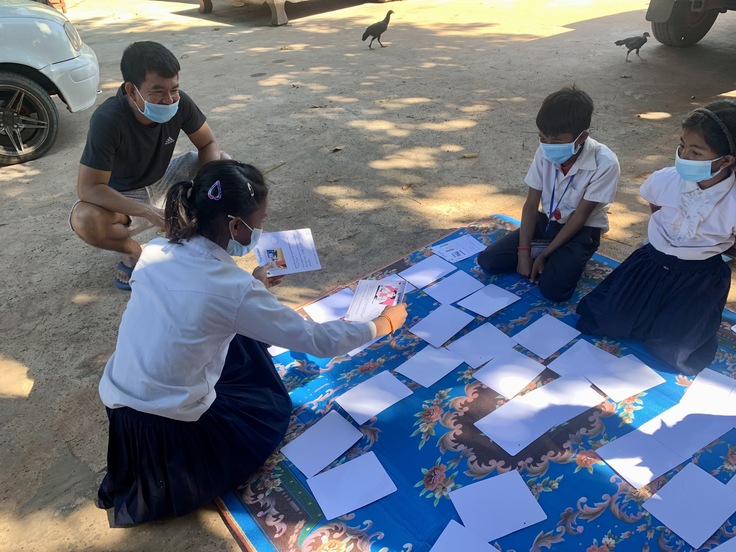 2022年1月にNGOと協力し、カンボジア シェムリアップ州スナーソンクリァーン村の小学校の生徒4名とオンラインでトライアル(実証実験)を行いました。カンボジアの子ども達の多くはトランプで一度も遊んだことがなく、初めての経験でしたが、職業を覚えながら楽しく学べました。神経衰弱とババ抜きのルールを用いて、ファシリテーターによって職業を覚えやすくなる仕組みを取り入れながら行いました。職業トランプを行った事によって、いままでは知らなかった職業に対して興味を持ったと言ってくれました。継続して行う事によって効果が高まると確信しています。