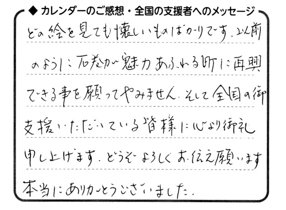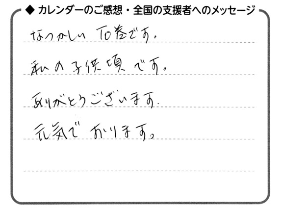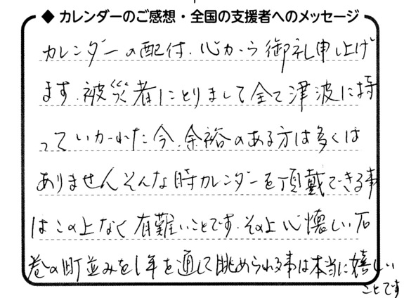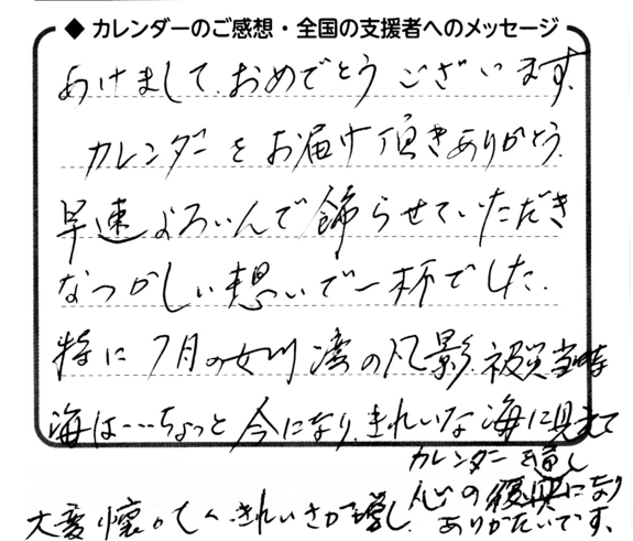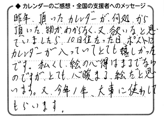 カレンダーをお届けした方々から、続々、「ご感想はがき」の方、頂いております!