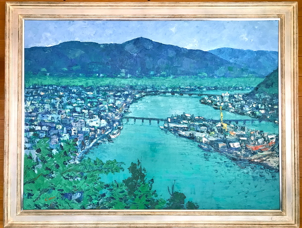 震災のあった年の冬、自宅に灯油を入れに来てくれた業者さんが、玄関に飾ってある父親が生前描いた、石巻の街並みと北上川の油絵を見て、泣いていらっしゃったんですね。声をかけると、「この辺に自宅があって、そしてこの内海橋を通って、毎日、会社に向かっていたんです。」と、話してくれました。「懐かしく。いろいろな思い出が思い出される」と。