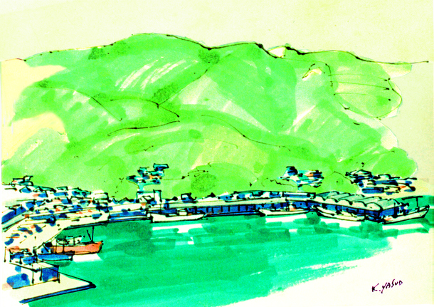 その中に、「絶対描いているはず!」と思いながらも、数年見つけられずにいた「女川湾」全体を描いた「水彩画」の写真を発見したのです!!!