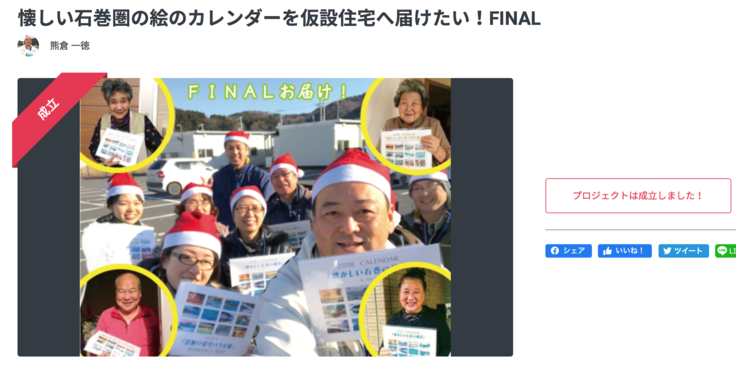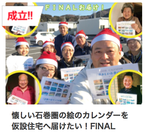 カレンダーの通常の販売で得た収益で、全戸ではありませんが、復興住宅で、カレンダーを希望されてる方に、郵送でお届けする形にシフトしたいと思います。