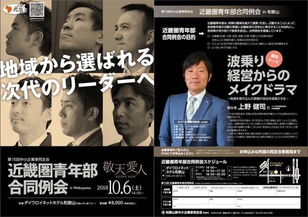 今、ご紹介しました上野社長が同友会の「近畿圏青年部合同例会」という場で経営体験報告されます。10月6日14時受付開始で場所は和歌山のダイワロイネットホテル。ゲスト参加も可能ですのでもしご興味があれば安田(メール:yasucon@ea.main.jp)までご連絡ください(^^)