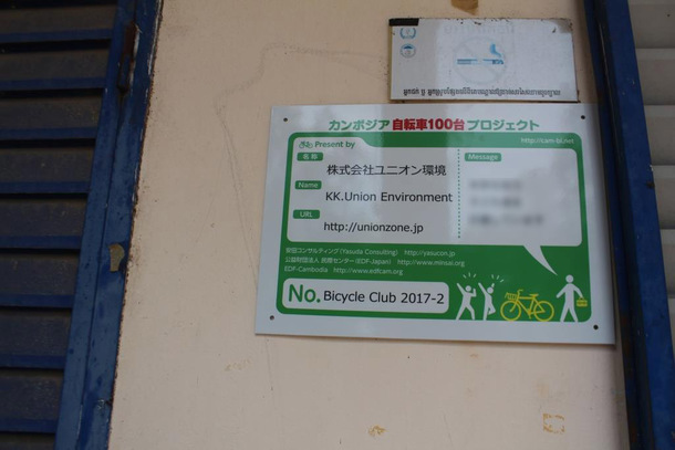 こちらが自転車クラブの設立の際に取り付けられるプレートです。(メッセージ部分はご協力者からのもので非公開となっていますのでボカシ加工しています)