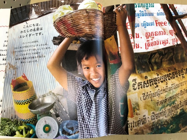 「世界のともだち」シリーズは、36か国の子どもたちのくらしを紹介する偕成社の写真絵本。そのシリーズを娘と一緒にいった図書館で見かけて、カンボジアだけ古書店で購入しました。