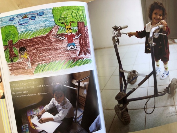 このページ、右側の女の子がかわいすぎる!!私はこの子の笑顔が大好きです。この本で一番大好きなページなのですが、だからこそ胸が痛んでやみません。こちらの女の子は両足が義足。地雷で吹き飛ばされてしまいました。