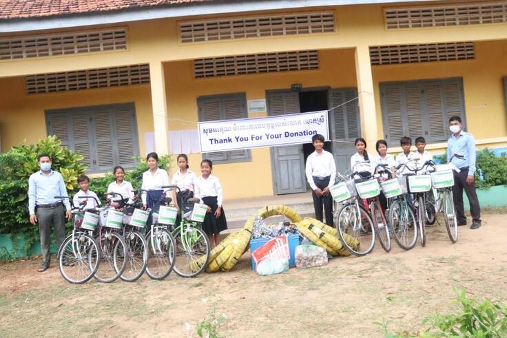 支援金を寄付 ※現地NGOのEDF-Cambodiaに国際送金し、同団体が「自転車、修理用工具、修理用パーツ」を現地で購入。