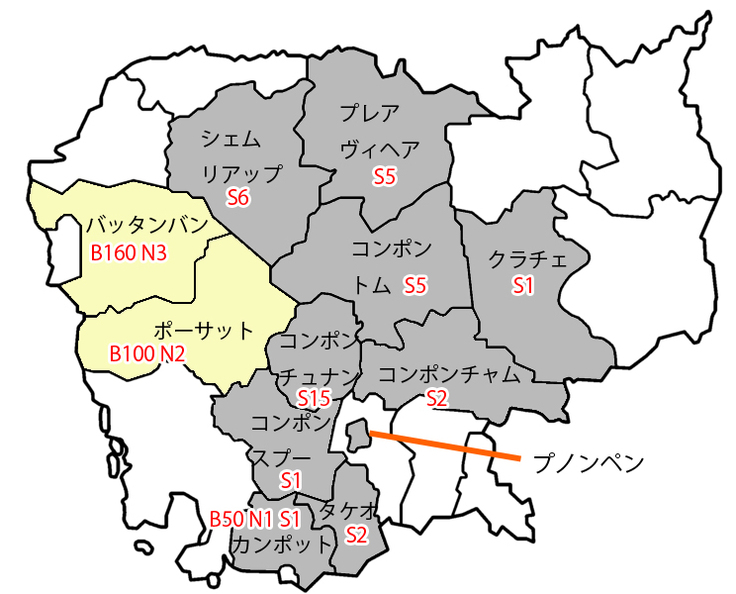 今年も皆さまのおかげで本当にたくさんの子どもたちを笑顔にすることができました。今年は新たなエリアでの活動ができました。バッタンバン州とポーサット州です。下に掲載しております地図で黄色に塗られているところです。これからも活動エリアを広げていきたいと考えています。