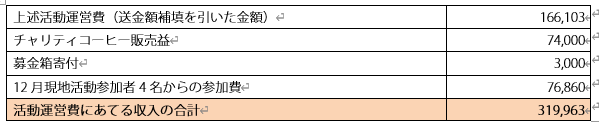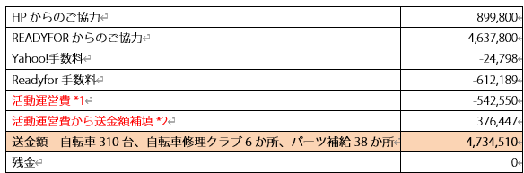 *2 円安の影響によりドルに換金した場合の送金額が不足したため、活動運営費から記載の金額を補填して送金いたしました。
