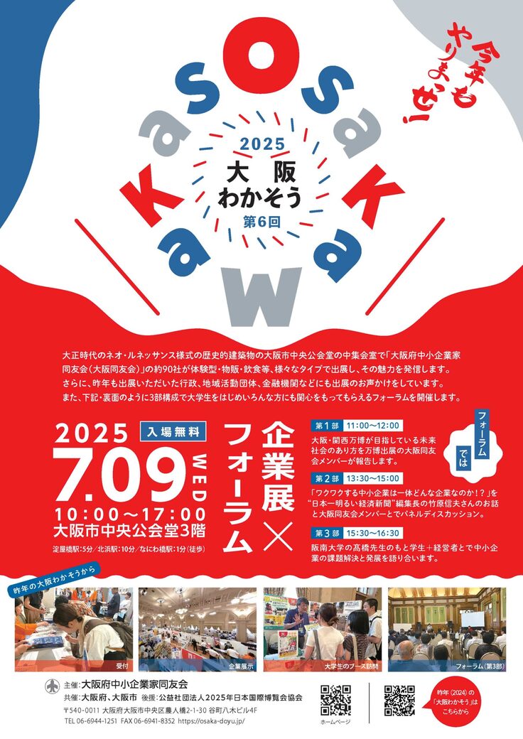 明日7月9日(火)、大阪市中央公会堂にて「大阪わかそう2025」が開催されます。