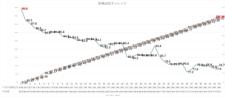 トータル395.96キロとなり400キロが見えてきました!目標の464キロまであと少し⁉