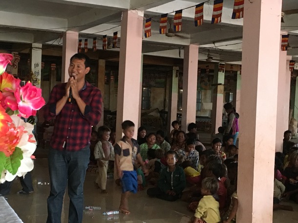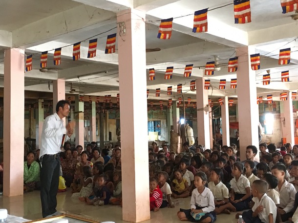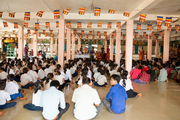 開校式には300名以上の子どもたち、村の人たちが会場であるお寺のホールに集まりました。