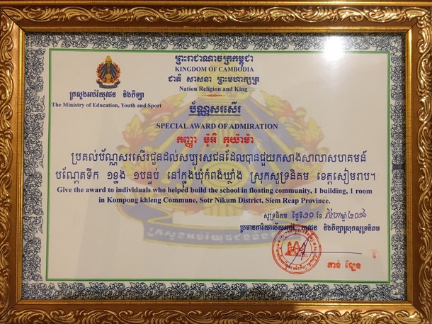 皆さまからご支援頂いた資金(レディーフォー手数料等を除く413,915円)は、全額コンポンクリアン水上学校プロジェクトのために使用させて頂きました。