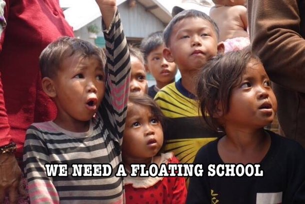 そして今回、水上学校を贈ろうと計画している水上生活村も、このような状況にあるカンボジアの農(漁)村部のひとつです。現在は子どもたちが学ぶ場所さえ確保されていない状況です。 この水上生活村の子どもたちにも教育の機会を保障するため、水上物件を学校として整備しプレゼントしようというのが今回のプロジェクトです。