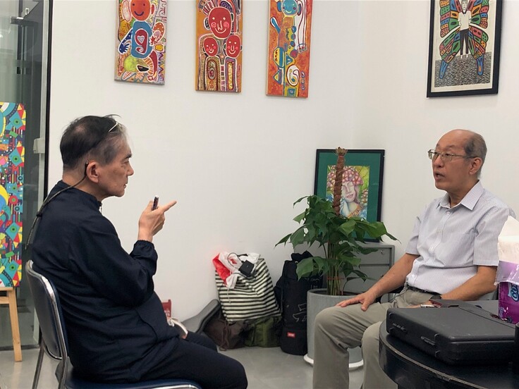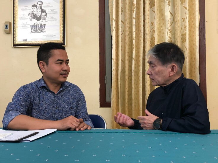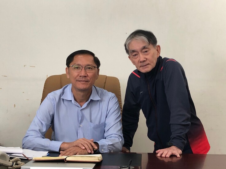 <カンボジア在在住歴30年以上になる手束 耕治さん(右)インタビュー時の様子>