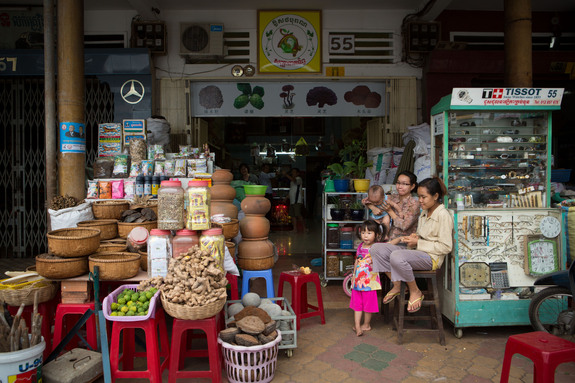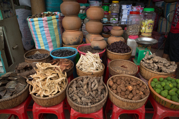 街の市場には伝統薬原料となる生薬を取扱うの専門の問屋街もあります。WHO(世界保健機構)の推計では、76%以上のカンボジアの国民が伝統医療を利用しているとされています。天然資源を活用する伝統医療の存在は、医療のアクセスの乏しい地方に住む人々の生活に、未だ欠かせないものなのです。