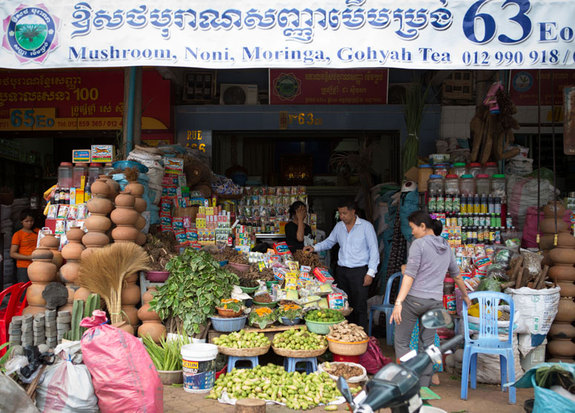 カンボジア伝統医療の中にも、日本でも知名度のあるタイの伝統医療と同じように、マッサージ療法や蒸気療法もありますが、一番用いられているのは、熱帯の天然資源(おもに薬用植物)を原料とした煎じ薬や、薬用酒、塗り薬、を使った薬餌療法です。