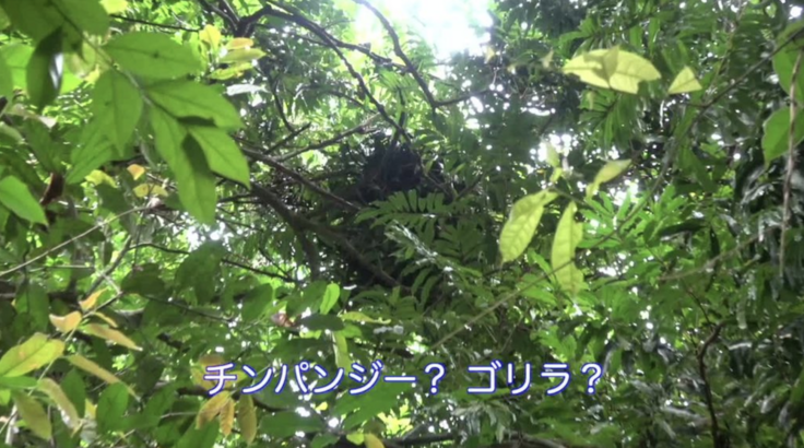ジェンベのガードポスト近くで観察された類人猿の樹上ベッド。岡安がチンパンジーかゴリラか、の可能性について解説しました。」