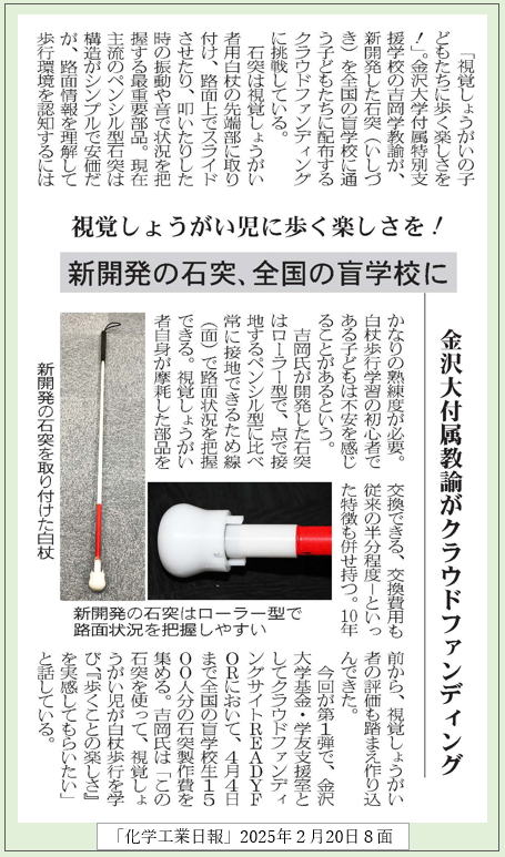 化学工業日報社 様から取材を受け、2025年2月20日(木)に掲載していただきました。