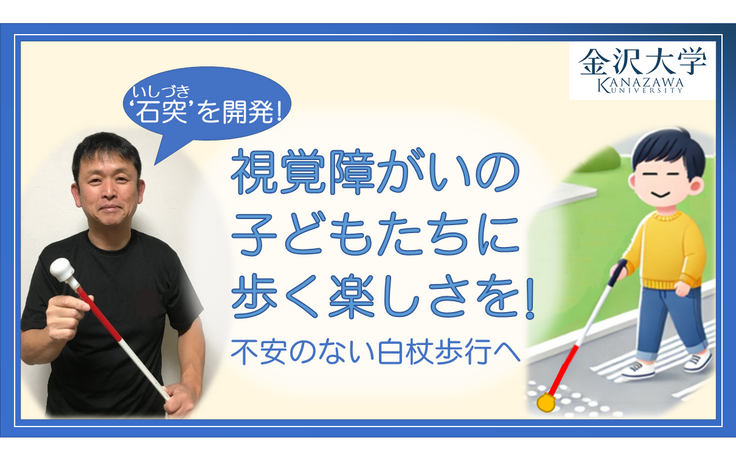 新しい視覚障がい者用の石突を開発した金沢大学附属特別支援学校 教諭 吉岡学です。
