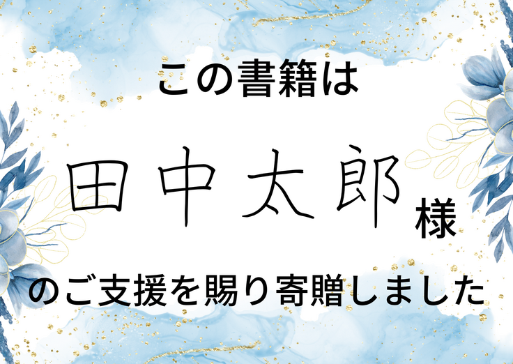 ●アレルギー対応に携わる自治体(区・市・県)の部署(生活衛生課、健康福祉部/健康増進課、教育委員会 学校給食課/学校保健課/健康福祉部/保健医療部/食品衛生課等)へ2冊寄贈 ●支援者様ご本人にも1冊送付 ●「本寄贈は〇〇様のご支援で実現しました」のメッセージカードを添えて寄贈(希望者のみ) ●本の「スペシャルサンクス」ページにお名前掲載(希望者のみ)