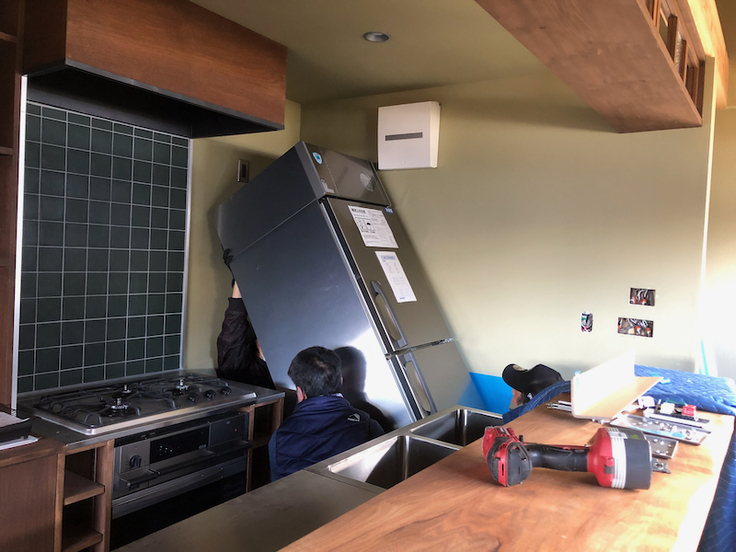 2月10日のプロジェクト完了まで残り期間も少なくなってきました。現在、設備の搬入等を行っているところです。小さな建物なので、搬入経路も狭く、納入業者の方も大変な作業になっています。
