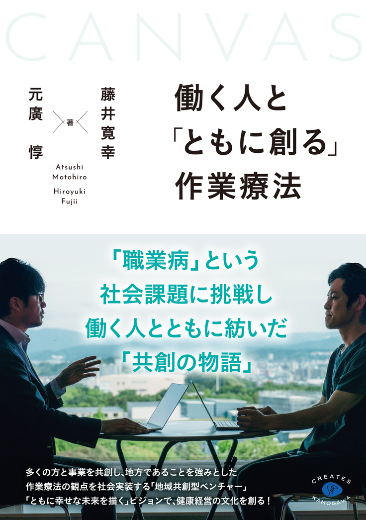 お渡しする書籍:『働く人と「ともに創る」作業療法』(著者:元廣惇、藤井寛幸:クリエイツかもがわ)