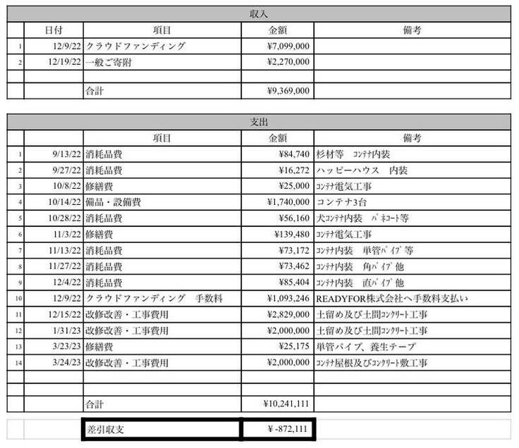 昨年秋のクラウドファンディングでは皆様からたくさんのご支援を頂き、シェルター環境整備を実行することができました。