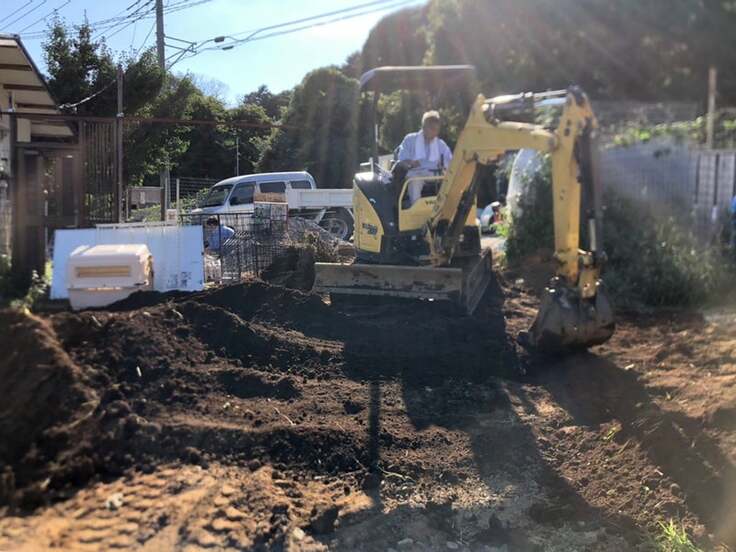 ケヤキさんの施工で、カコハウス南側にもコンクリート打設通路ができました。