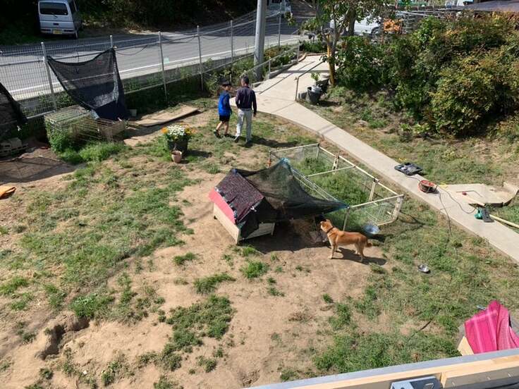 知恵や工夫のキラキラしたかけらをジグソーパズルのように集めて平屋シェルターのドッグランや通路が出来ました。屋根が付きました。