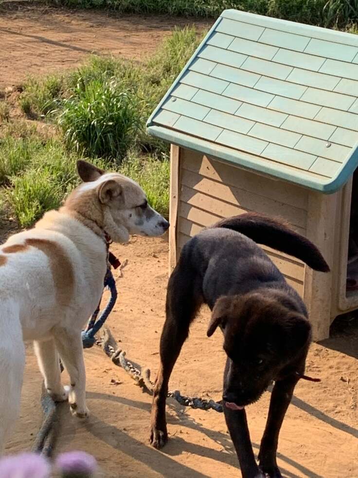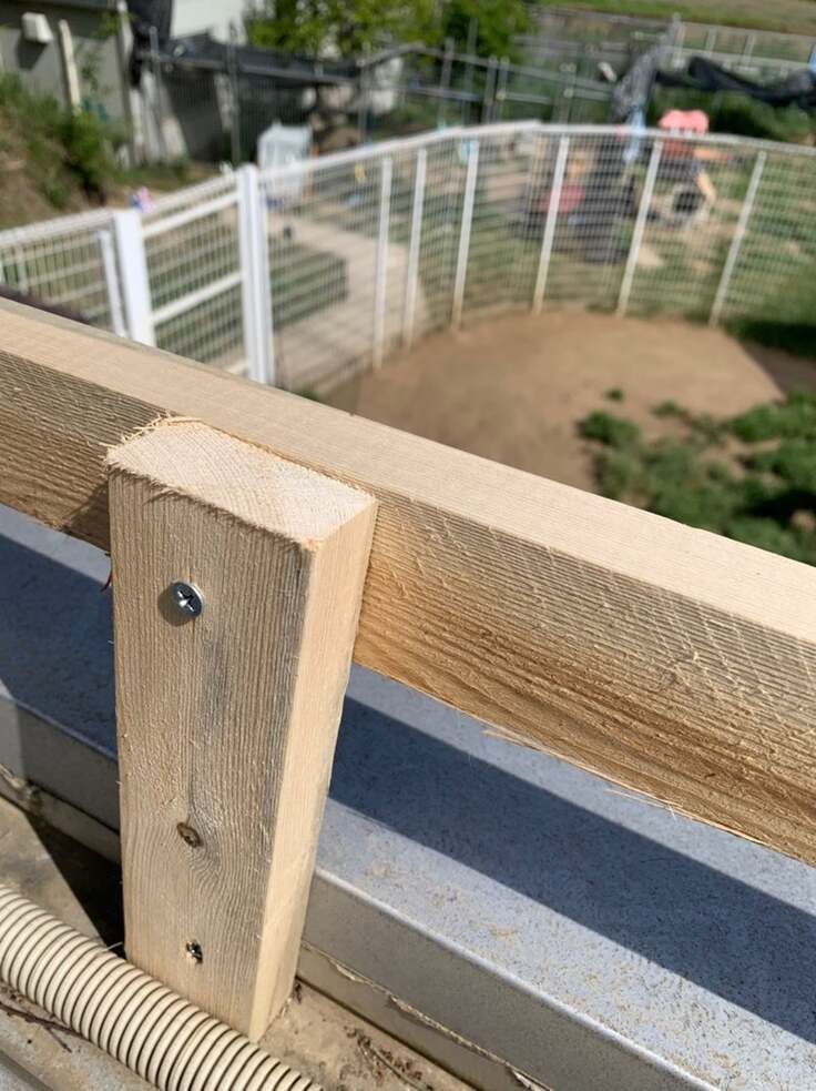 傾きかけた犬シェルターの高台に土留めをすることで、倒壊する不安も取り除かれました。