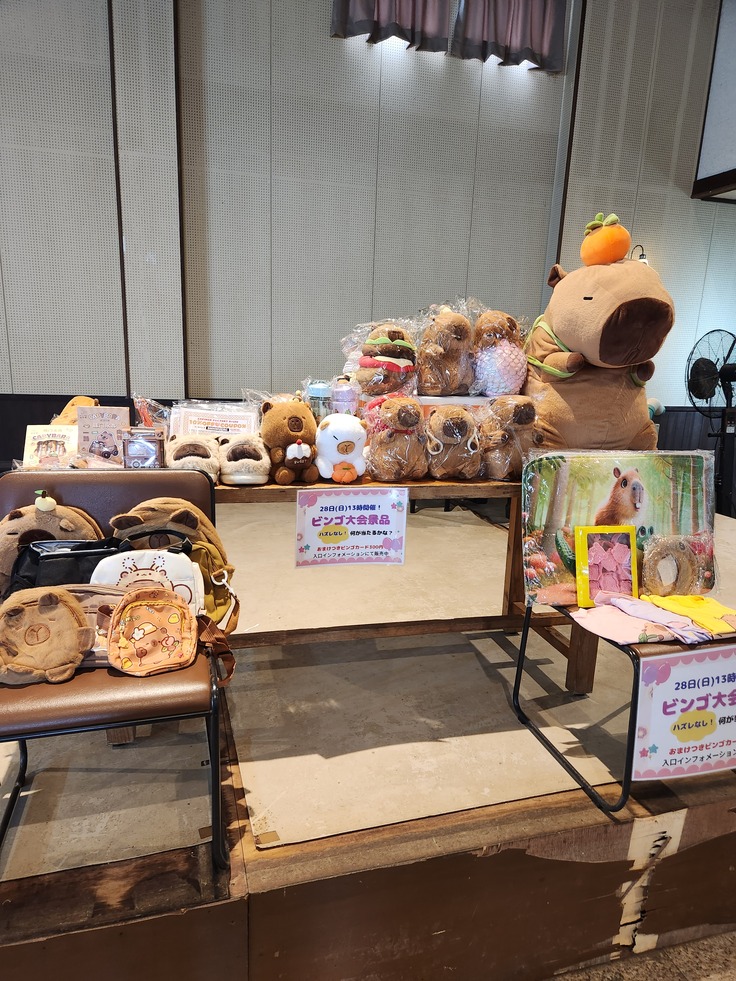 途中、ビンゴ揃った人達が景品選びでごった返して、まるでバーゲンセールの様でした😅