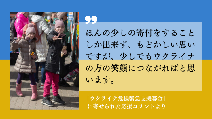 先日まで行いました、ウクライナ危機緊急支援募金のクラウドファンディングにお寄せいただきました、応援コメントを一部ご紹介させていただきます。