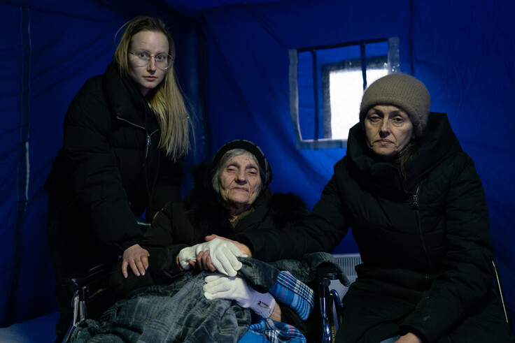 「ここがひとまず今住んでいるところです」と、マリウポリから子どもと孫と一緒に逃げてきたOleksandraさんは言います。Oleksandraさんは81歳、娘のElenaさんは53歳、そして孫のVikaさんは22歳です。