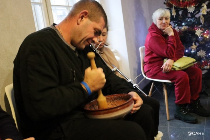 クリスマスイブには、避難所のスタッフがウクライナの伝統的なクリスマス料理「クティア」の作り方を学ぶクラス企画しました。そして、インストラクターは様々なレシピを準備。小麦のお粥を使った伝統的なものから、米やオートミールなども用意しました。東部地域では、これらの材料を使ってクティアを作ることがよくあります。女性たちはレシピを交換し、クリスマスの思い出を語り合いました。