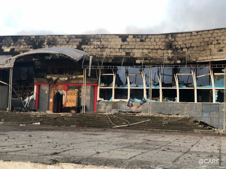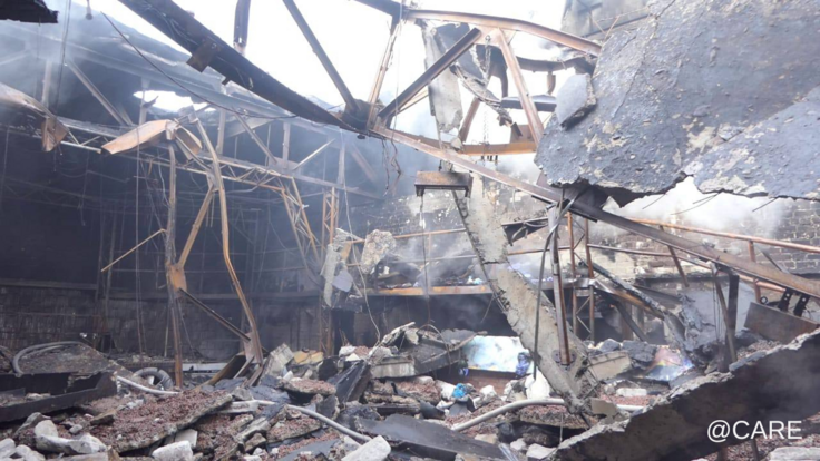 2023 年12月5日夜、2発のミサイルがウクライナ南部ヘルソンの人道支援施設を直撃しました。施設にある倉庫には、CAREの救援物資を含む複数の国際人道支援組織からの支援物資が保管されていました。