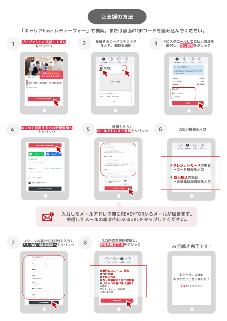 クラウドファンディングのご支援をいただく場合、本来はREADYFORでの会員登録が必要となります。