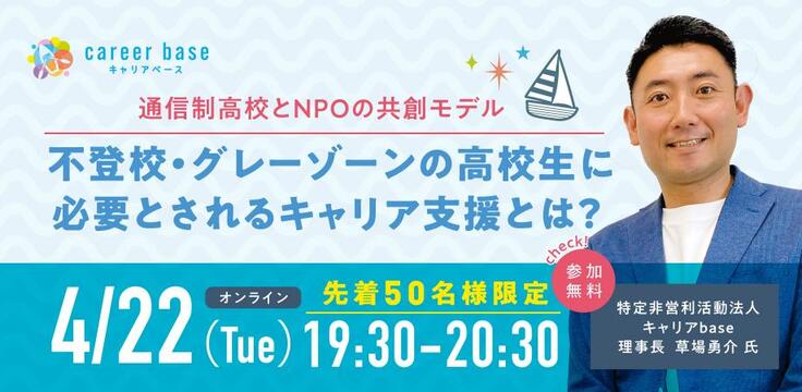 【4/22(火)19:30開催イベント】不登校・グレーゾーンの高校生に必要とされるキャリア支援とは?