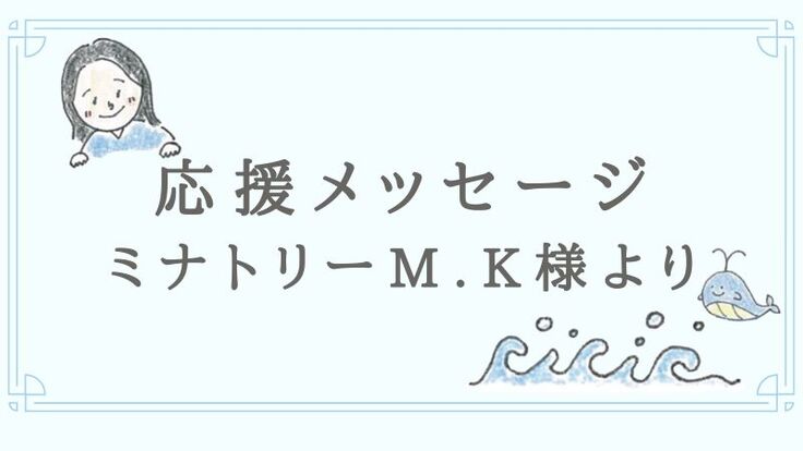 さて、40人目の『応援メッセージのご紹介』は、ミナトリー M.K 様よりいただいたメッセージをご紹介いたします✨