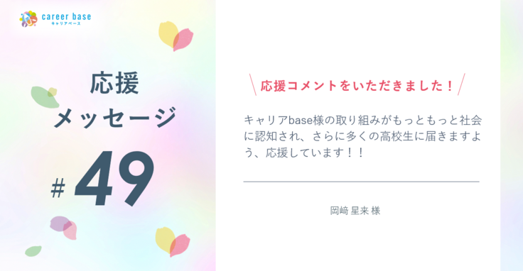 キャリアbase様の取り組みがもっともっと社会に認知され、さらに多くの高校生に届きますよう、応援しています!!